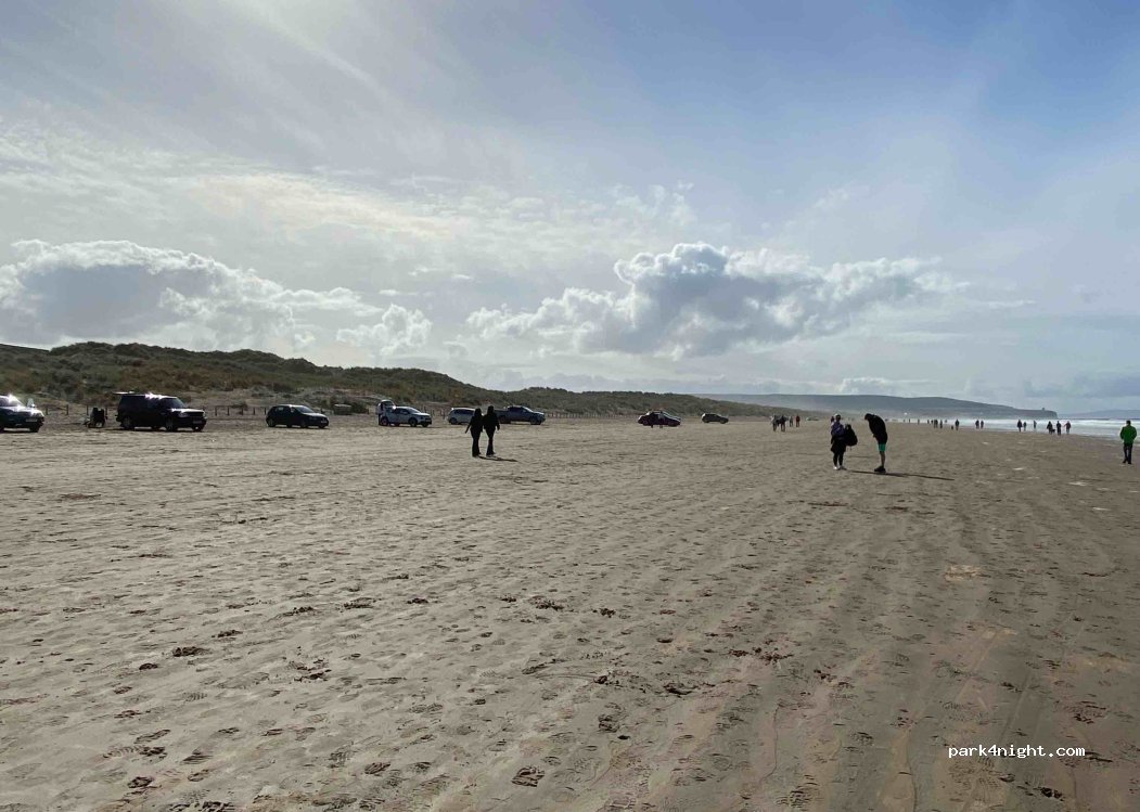 Magnifique endroit nous avons payé 8£ car oui c est un site payant. Vous pouvez vous Parker sur la plage. En ce dimanche ensoleillé la plage est remplie mais chacun a son espace. C est très agréable. Il est interdit de dormir ici.