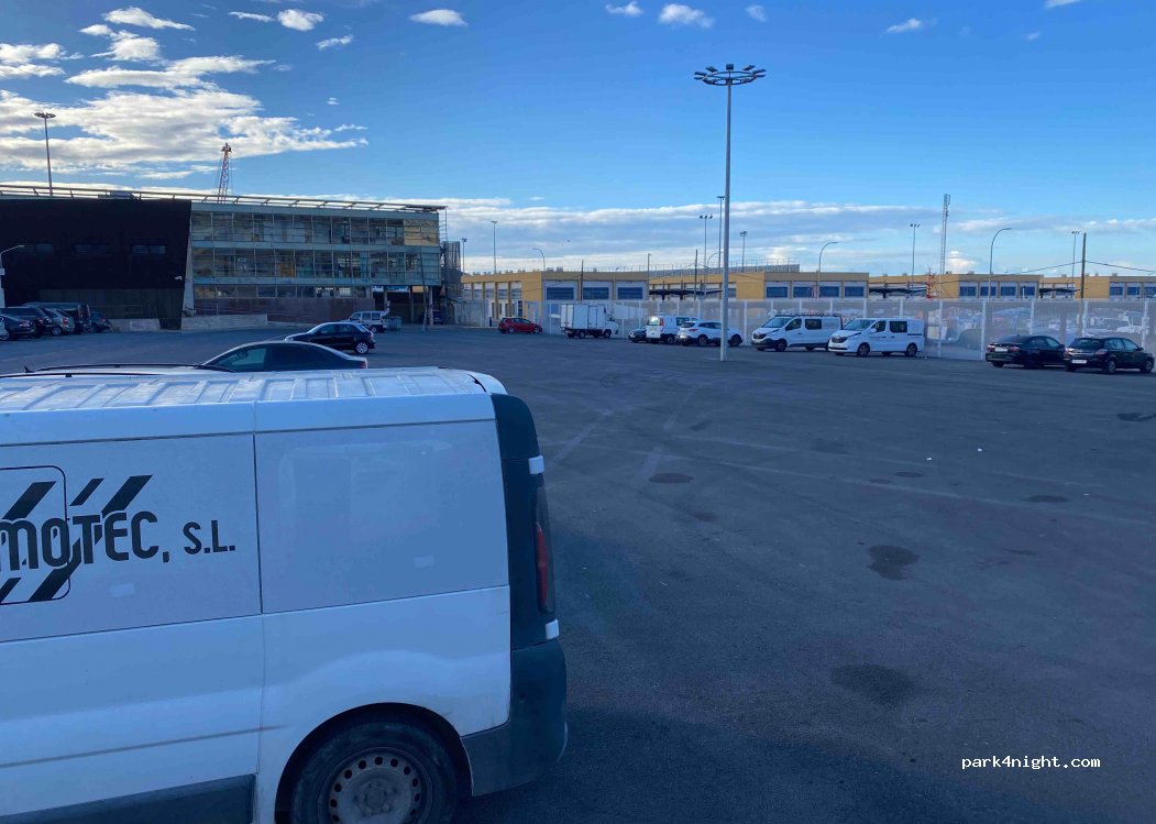 Parking du port de pêche. Pas le spot le plus attrayant, aucun service, mais gratuit et... hyper tranquille. Le soir, les poids lourds viennent se garer là et repartent le matin vers 7h. Pas de bruit, pas d'ennuis, surveillé par la police portuaire. 15 à 20 minutes à pied de l'Alcazaba. Ce spot est une très bonne surprise.