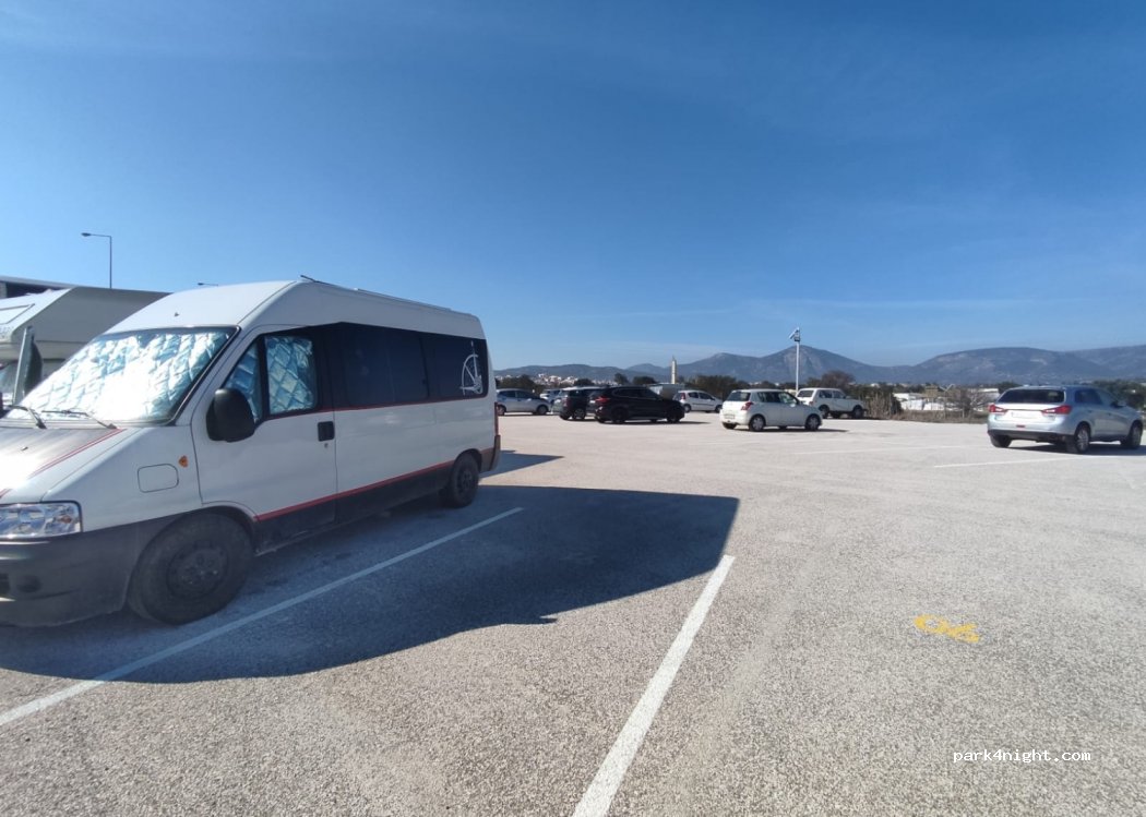 Paid parking to visit Athens and leave the van/caravan with peace of mind, guarded 24 hours a day. Without any service. No shade, but plenty of space.