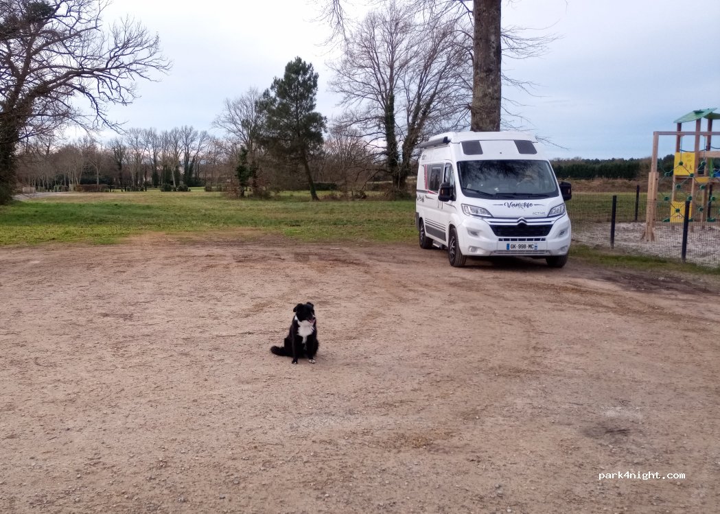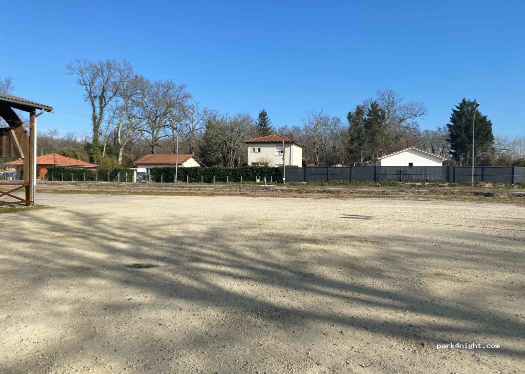 place de parking à côté d'une salle des fêtes. WC publics supers cleans juste à côté. un peu de nuisance car la route à côté circule pas mal mais parfait pour un arrêt court en chemin!
