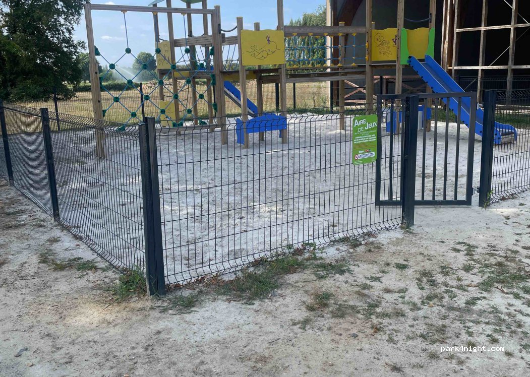 Parking calme avec possibilité pour gros camping-car. Points tri, jeux pour enfants extérieur et couvert