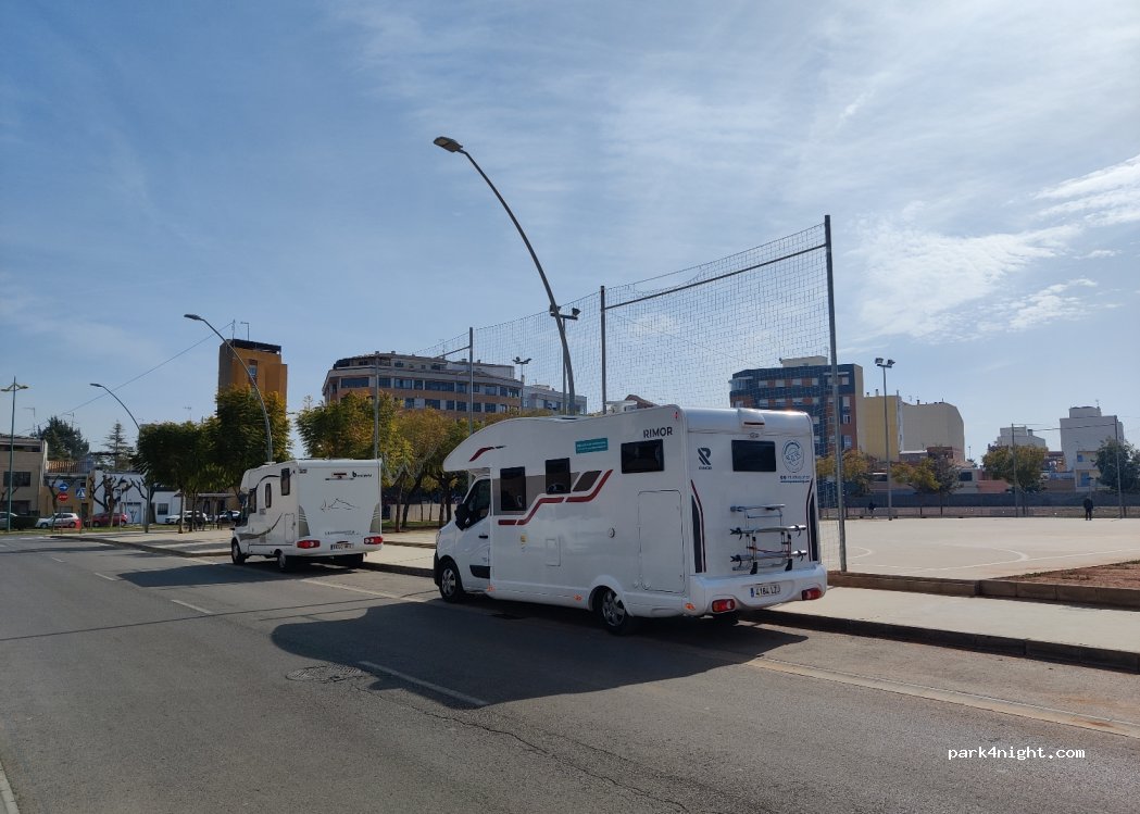 Muy buen sitio para aparcar con espacio. Lugar tranquilo y lleno de vida ya que hay un complejo deportivo de fútbol y está muy transcurrido. A 10 minutos del estadio de fútbol. Aprovechar a parar aún que sea poner gasolina que está muy bien de precio en todo el pueblo