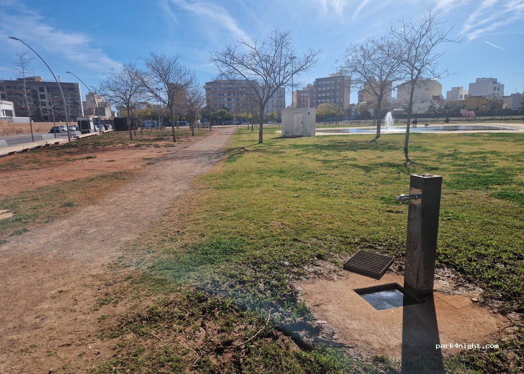 We bleven hier enkel overdag om naar een wedstrijd van Villareal te gaan kijken. Leuk park met banken naast de parking. vuilnisbakken en waterpunt aanwezig. We hebben niet overnacht, maar dit lijkt ons zeker veilig en rustig.