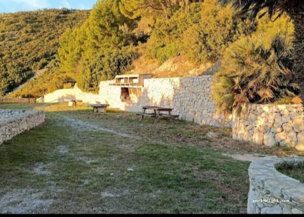 Mesas de picnic y zona de barbacoa en la parte superior.