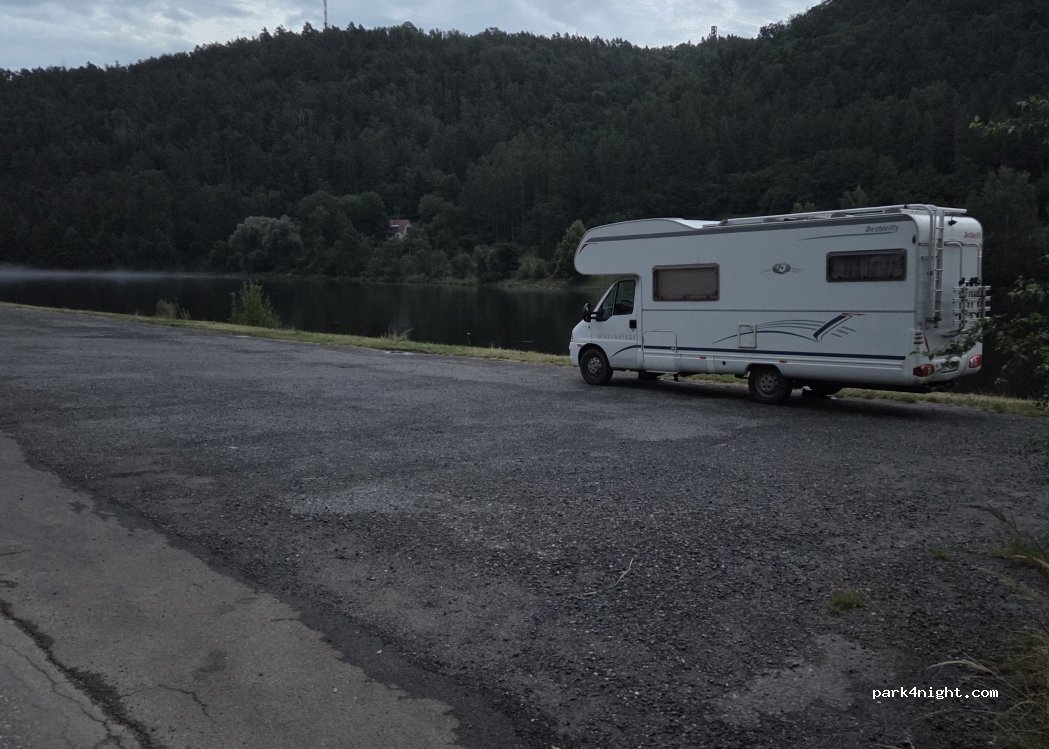 Lieu parfait pour laisser la camion et grimper au point de vue Nad podkovou sur le méandre. Grand espace assez plat en bord de route, aucun panneau. Pas de services, assez bonne 4G.