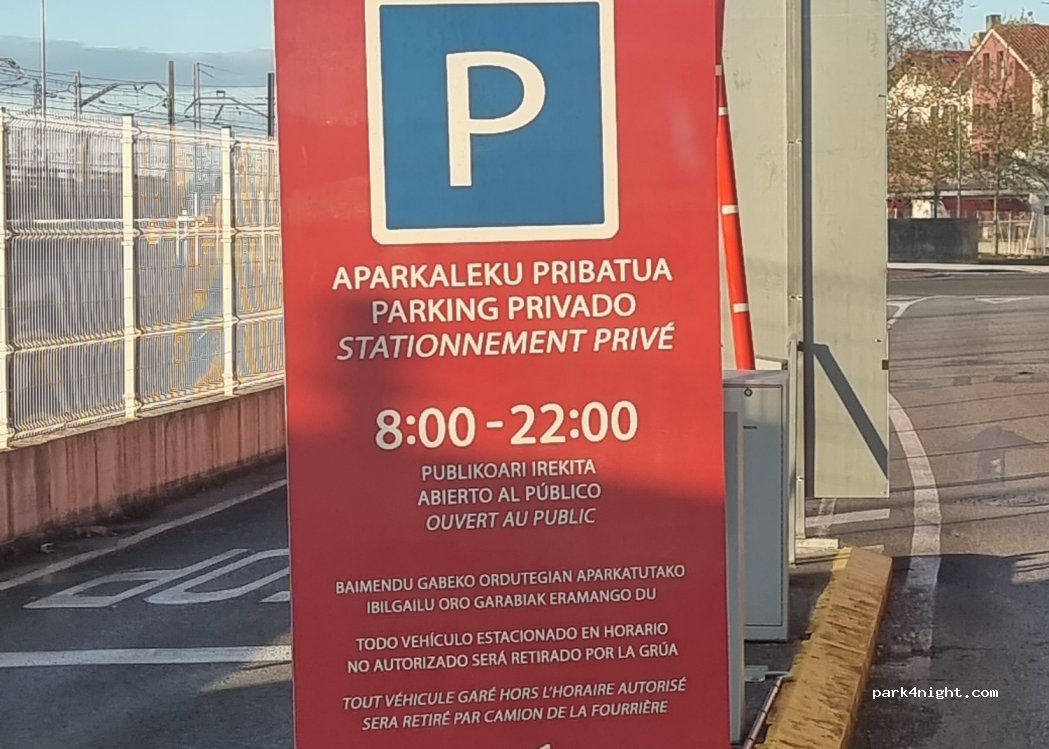 Ouvert de 8/22h interdit d’y passer la nuit. A côté station de métro qui permet d’aller à san sebastian la journée