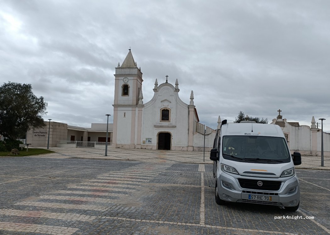 Ein Parkplatz vor der Igreja de Nossa Senhora da Anunciação de Tornada.