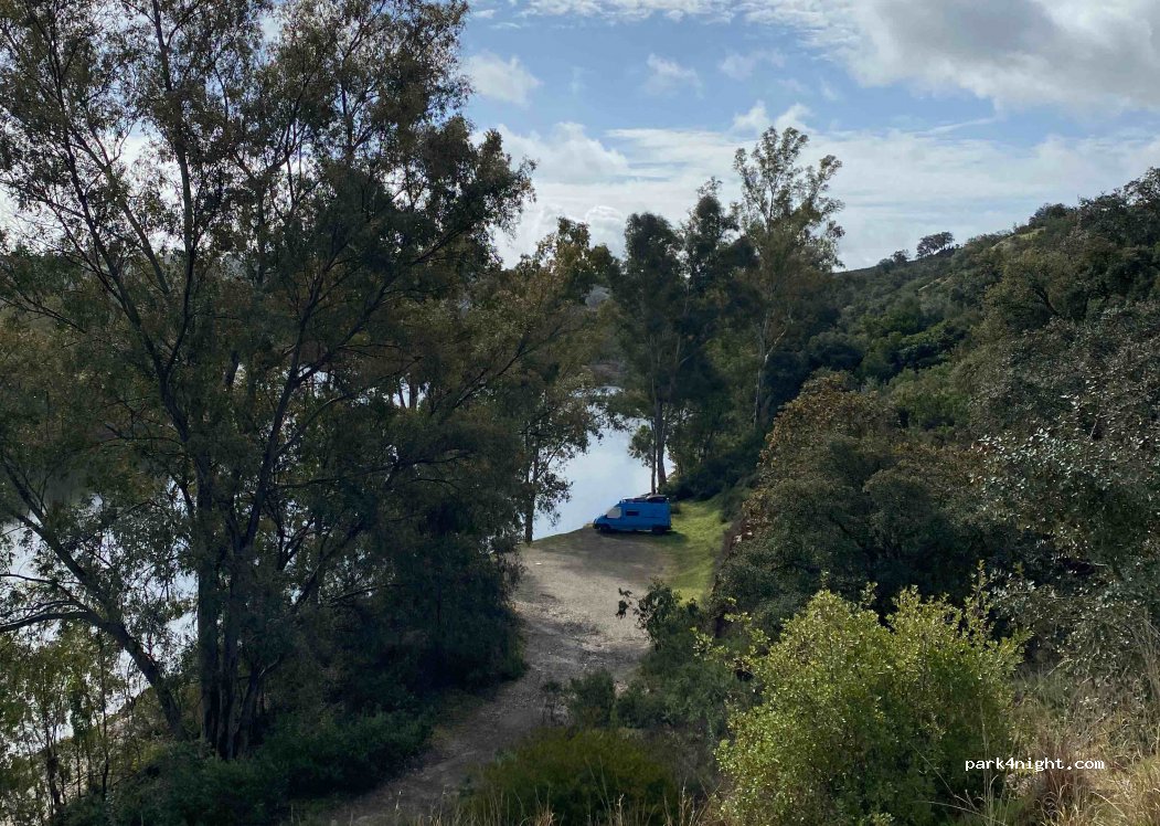 Really good spot! The dirt road a bit steep but not too much, only for vans. Place for 3-4 vans, relatively leveled, road close by but minimal traffic. Direct access to the lake, kayak or SUP recommended.