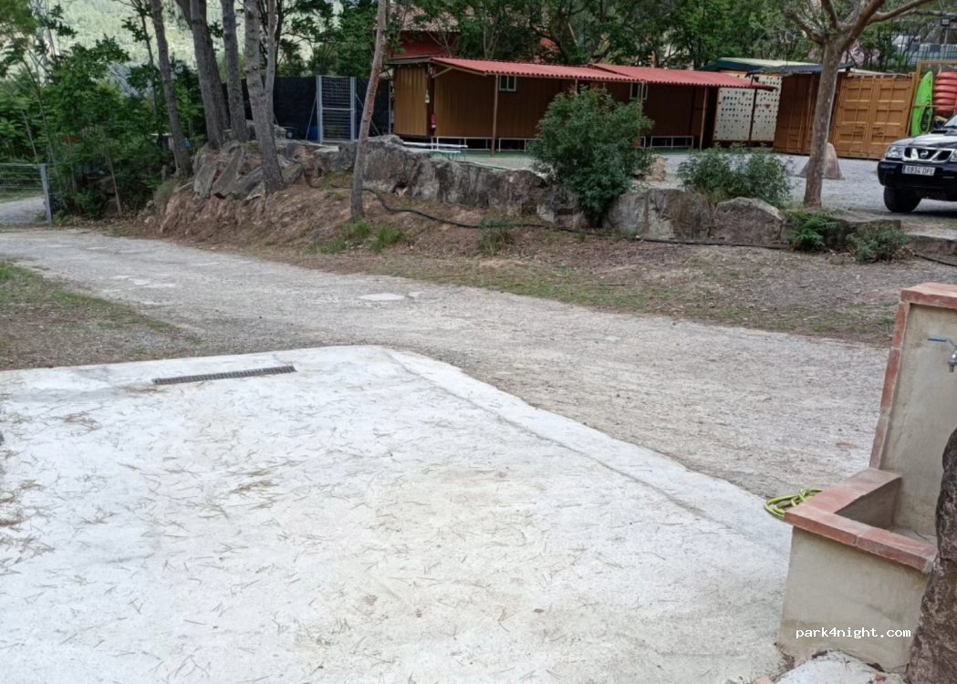 Aparcamiento con todos los servicios. Duchas, WC,fregadero, vaciado de aguas y zona para cenar en el exterior. Contratamos actividades y por ello, dos adultos dos niños pagamos 25€ la noche. La entrada tiene mucha pendiente pero con auto de 7,4 subimos sin problema gracias a qué han asfaltado recientemente. Rafa el dueño muy amable y dispuesto a ayudar en todo momento.