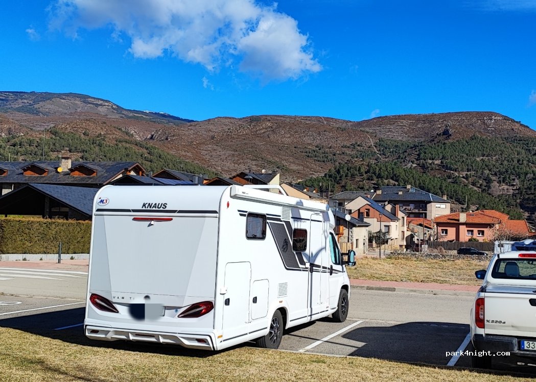 Aparcamiento sin servicios cerca del centro del pueblo. Restaurantes y supermercado cerca. Buen acceso desde la carretera, pero no fiarse mucho del GPS ya que puede meterte por los callejones del centro. Hay muchas plazas pero algunas con inclinación. Hemos dormido muy tranquilos.