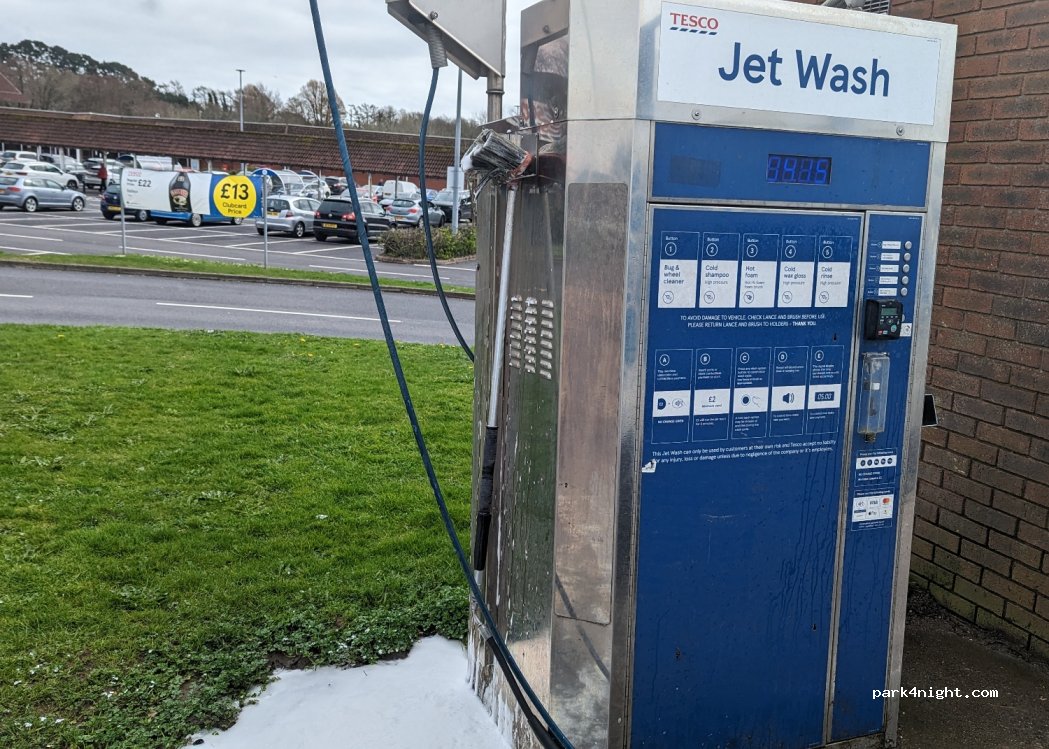 Un jet de lavage en libre-service Tesco. Assez grand pour camping-car. Aucune restriction de hauteur. Laisser la station-service sur la gauche et c'est là.