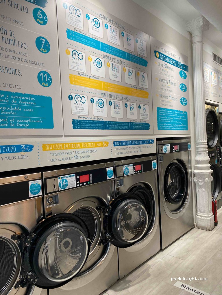 Pretty good looking laundy. Finding a parking place is almost impossible but a bit further it is managable. As of no nut sure about the opening hours since a sheet of paper blocked the times (8-22:00)