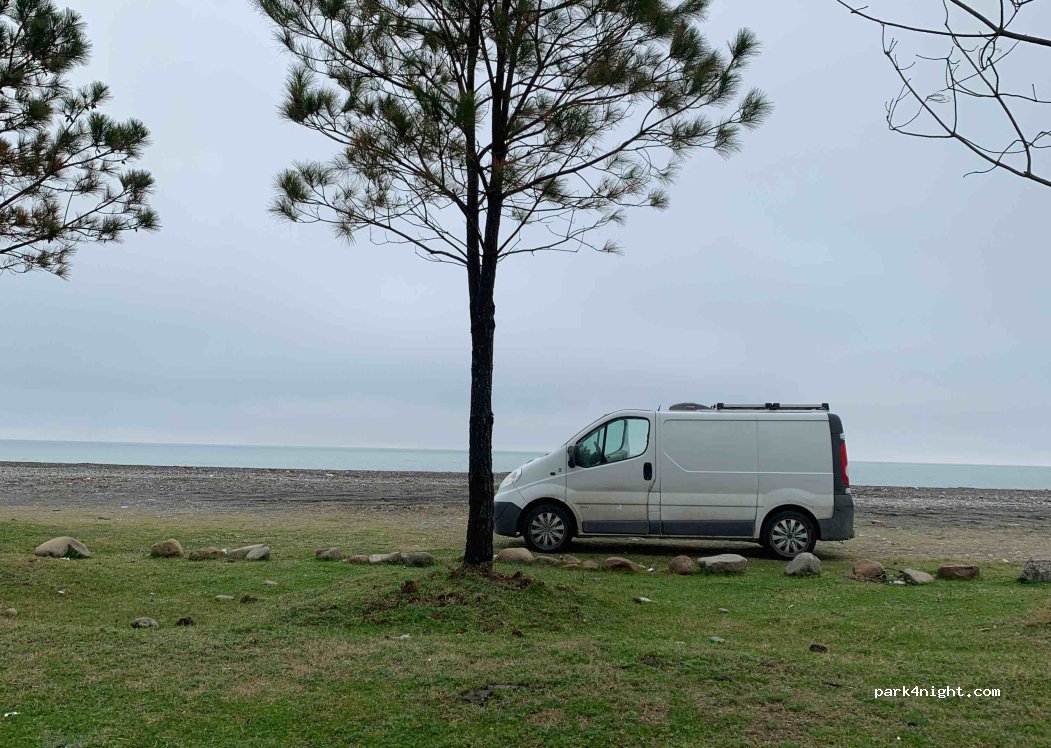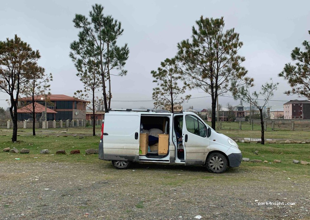 The place is quiet, it is close to some trees. We stopped here before crossing into Turkey. There is a lot of garbage around