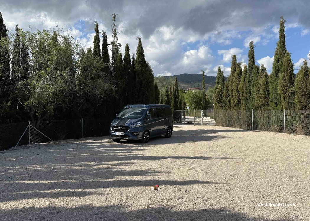 Cerca del centro del pueblo. Hay una fuente pero no funciona. Una pena que un pueblo tan importante como Ibi no haga una zona algo más decente. Para pasar una noche está bien.