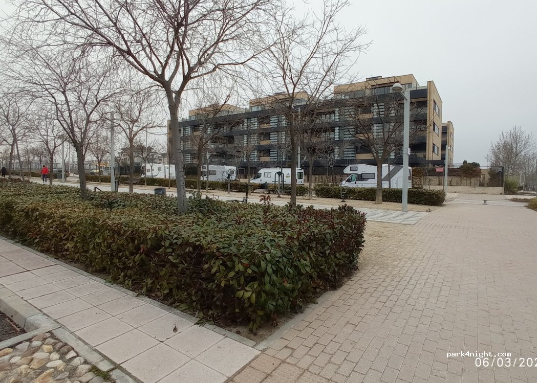 Parking day and with the possibility of spending the night without problems and without noise during the night, close to the metro and train to visit the city of Madrid. Full of parks with games for children.