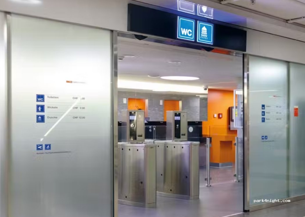 Showers on the first floor of the Zurich train station. The cost is 12 francs.