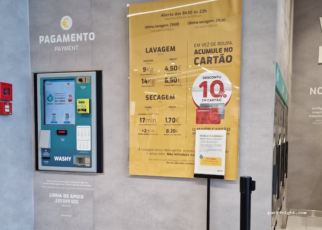 Supermercado Continente. Cuenta con lavandería y aparcamiento exterior para autocaravanas.