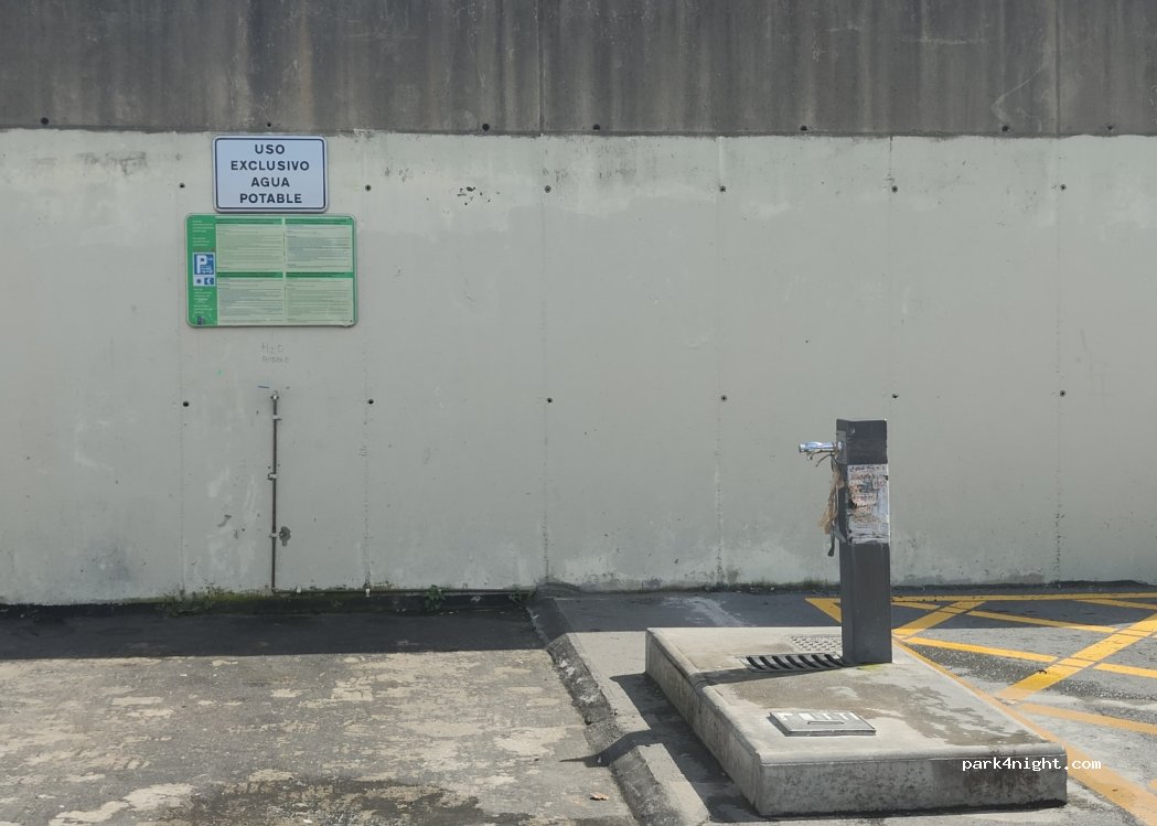 Perfect for spending one or two nights (maximum 72h allowed) black and grey waters ok. Although the ash drainage leaves something to be desired as the smell of undrained water attracts flies. Drinking water on the wall. Few steps from markets and Decathlon. 600m from the metro station directly to the centre of Bilbao. Thanks to the city for promoting such good spaces like this.