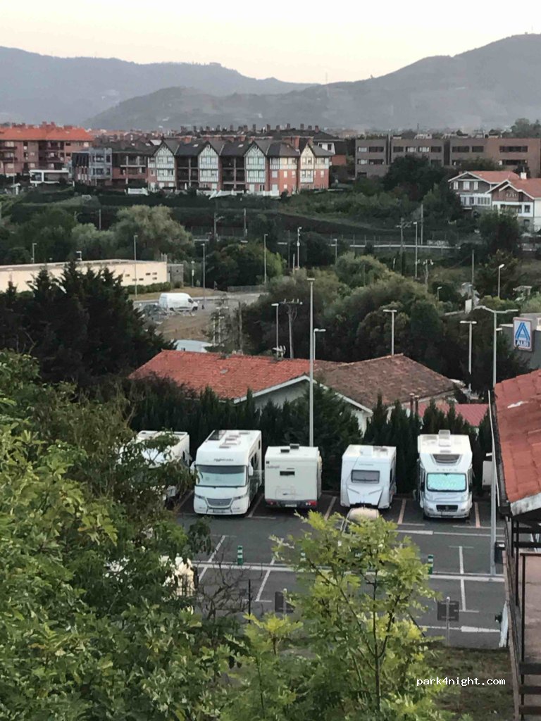 c'est un parking qu'il faut partager avec les voitures et notamment avec les joueurs de foot ( stade à côté ) mais pas de problèmes. nous y avons passé le week-end end, deux nuit. très calme. impeccable pour visiter Bilbao, en scooter ou par le train. je recommande. tellement rare dans cette région. merci à la municipalité et aux footeux de ne pas râler et d'aller et venir en respectant les CC