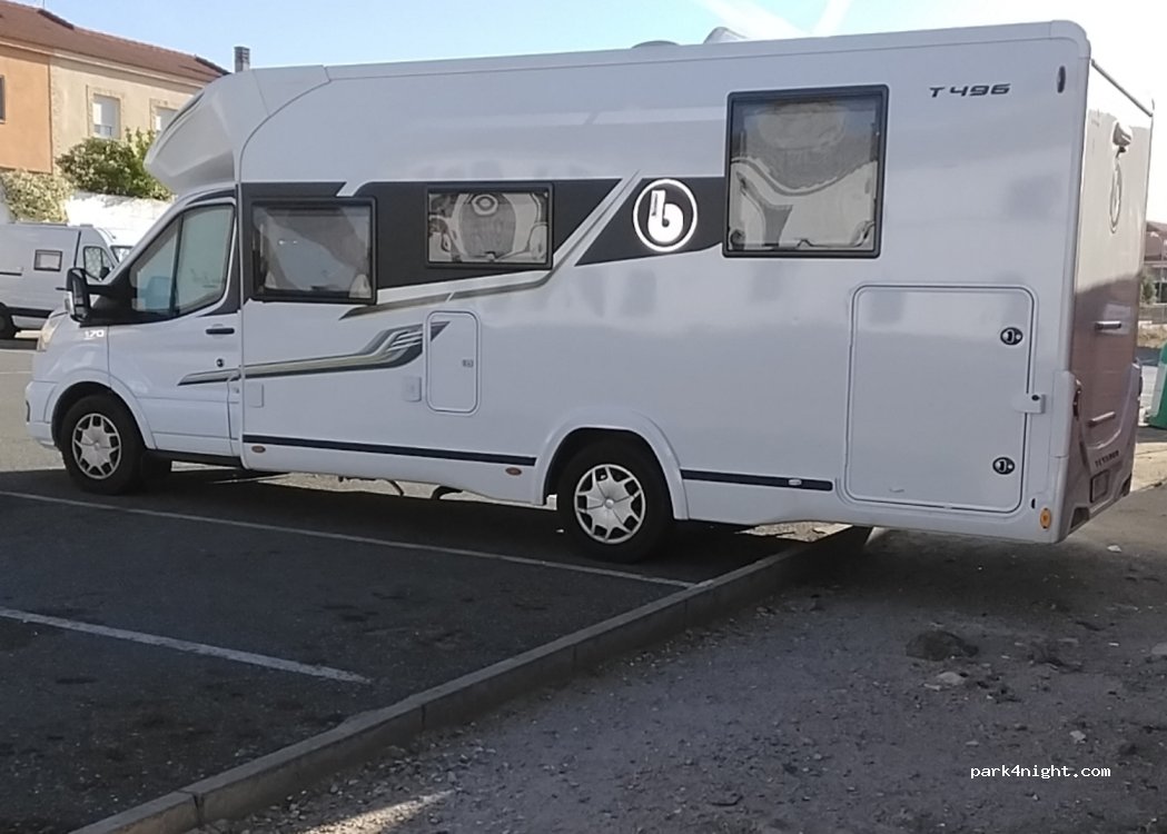 Hemos pasado un par de noches tranquilas. Ideal para visitar Puy du Fou y Toledo. Hemos desayunado en la cafeteria de al lado Buenos Aires y genial. Gracias al ayuntamiento por dejarnos dormir.