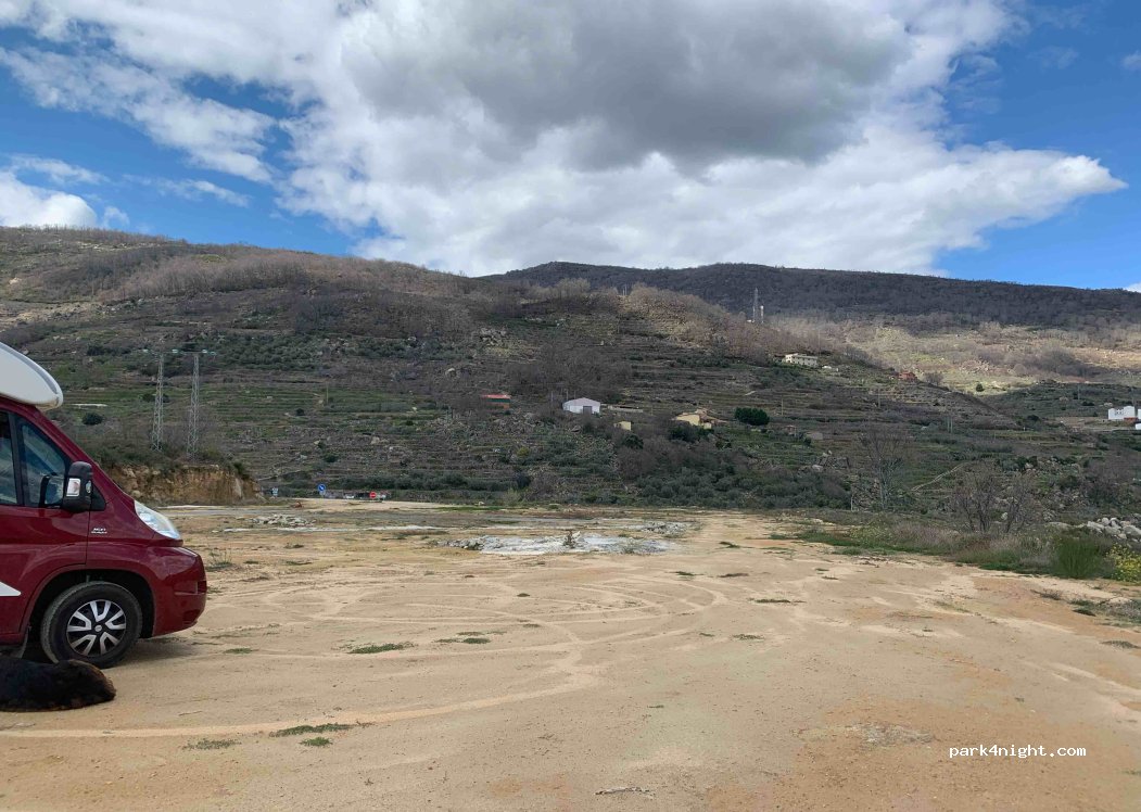 Es un poco antes de donde marca el GPS, se ve la explanada de tierra perfectamente. Puedes encontrar zonas niveladas. La mejor opción para aparcar en el Torno. El pueblo a 2km por carretera empinada.Lo único es si sopla el viento, al estar en la explanada sin nada que lo pare la auto se mueve mucho. Lógicamente sin ningún servicio. Dormimos solos