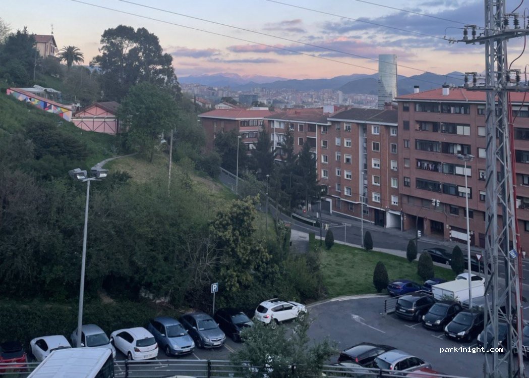 À l'entrée de Bilbao, au-dessus d'un petit quartier résidentiel. Parking sur trois niveaux. Pas spécialement conçu pour les camping-cars, mais on y trouve plusieurs grands fourgons. À 20 minutes à pied du musée Guggenheim. Supermarché à proximité immédiate. Calme.