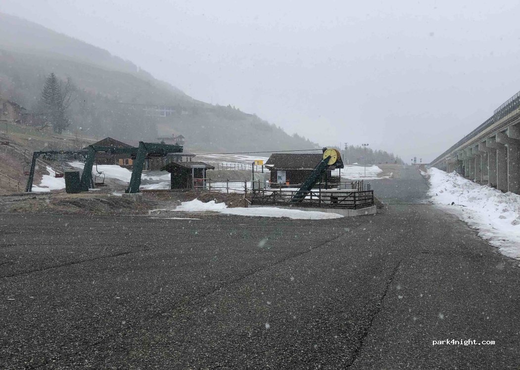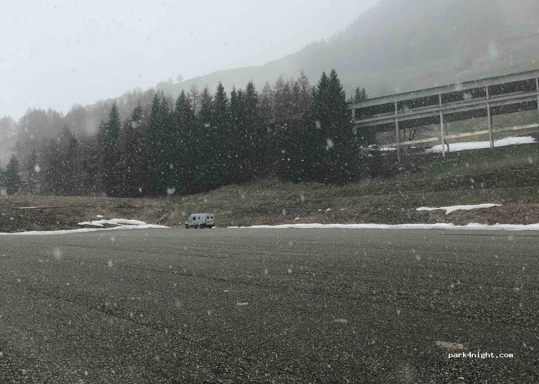 sosta notturna sconsigliata in inverno perché nel parcheggiano driftano auto su ghiaccio per ore.