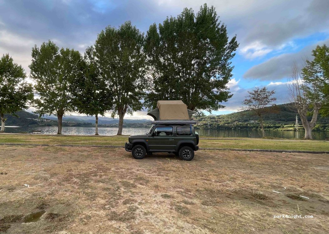 Lugar espectacular para aparcar y pernoctar . Vistas increíbles al lago . Muy tranquilo de noche . No sacar sillas y toldo porque es un aparcamiento público. Deportes acuáticos . El lugar es el Club Náutico de Castrelo de Miño.
