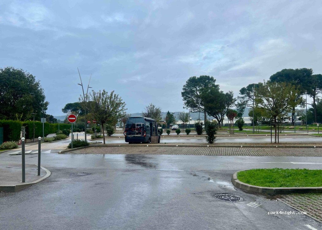 Grand, propre, une partie ombragée, calme le week-end, nous y avons passé 2 très bonnes nuits. Sol plat et fontaine disponible en face côté terrains de tennis. Tout un tas de commerces (boulangerie, carrefour market) à côté. centre ville à deux pas.