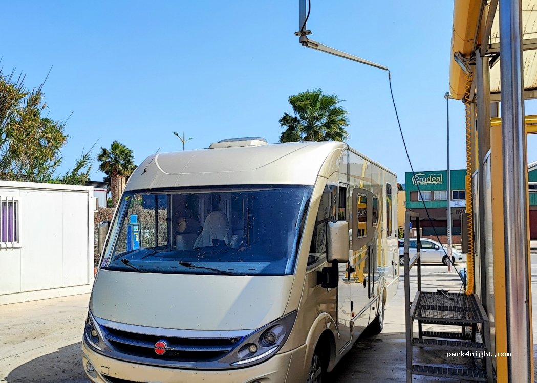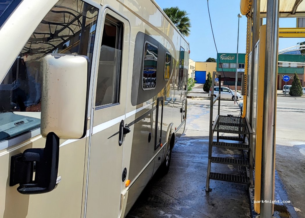 Goede plek om schoon te maken. Let op: NIET lozen van grijs water!! Dit staat ten onrechte in de icoontje maar is daar niet door Lavacar op gezet.