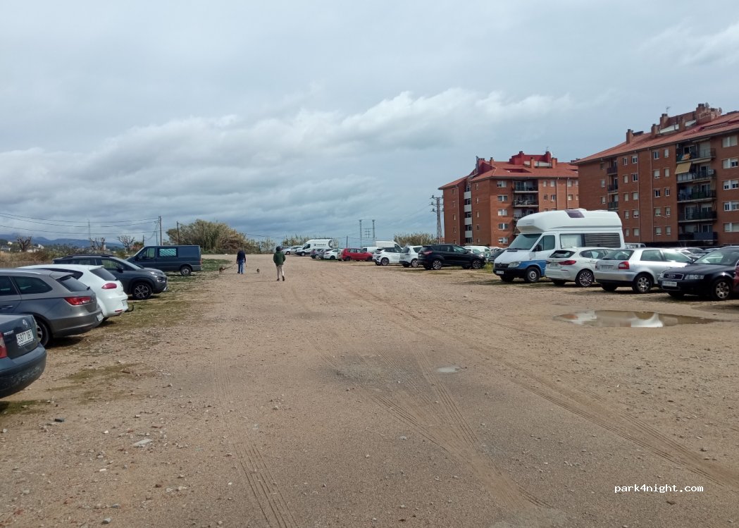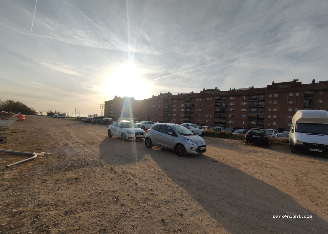 Parcheggio sterrato abbastanza in piano. Abbiamo passato lì 4 giorni e 3 notti. Consigliamo di parcheggiare in fondo perché è molto utilizzato dai resistenti, per non disturbare. Molte persone portano i cani a fare i propri bisogni, quindi attenzione dove si mettono i piedi. Ci siamo sentiti molto sicuri. Abbiamo lasciato il camper per andare a Barcellona e in spiaggia. Consigliatissimo!