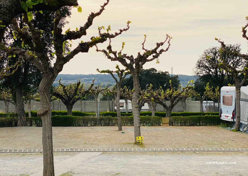 Camping muy grande con piscina, supermercado y restaurante. Muchas parcelas llanas y sombreadas. Situada en una ladera junto a un camino rural muy transitado. En temporada baja, el supermercado, restaurantes, etc. esta cerrado.