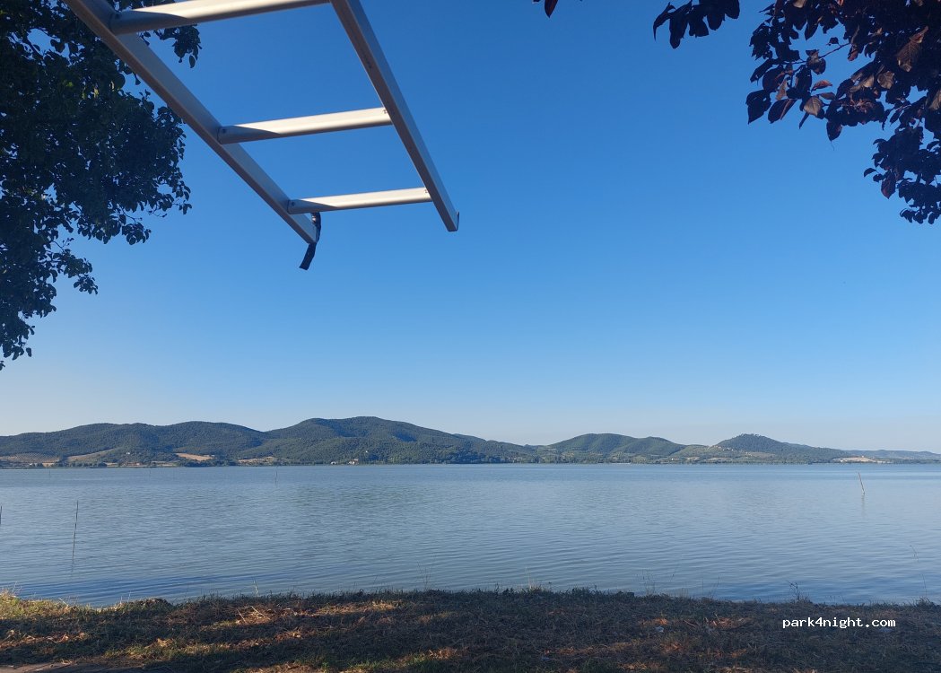 Area sosta carina, molti parcheggi sono per le auto, ma si trova facilmente anche per camper. A due passi dall'imbarco per il traghetto per andare all'Isola Polvese, quindi molto comodo.