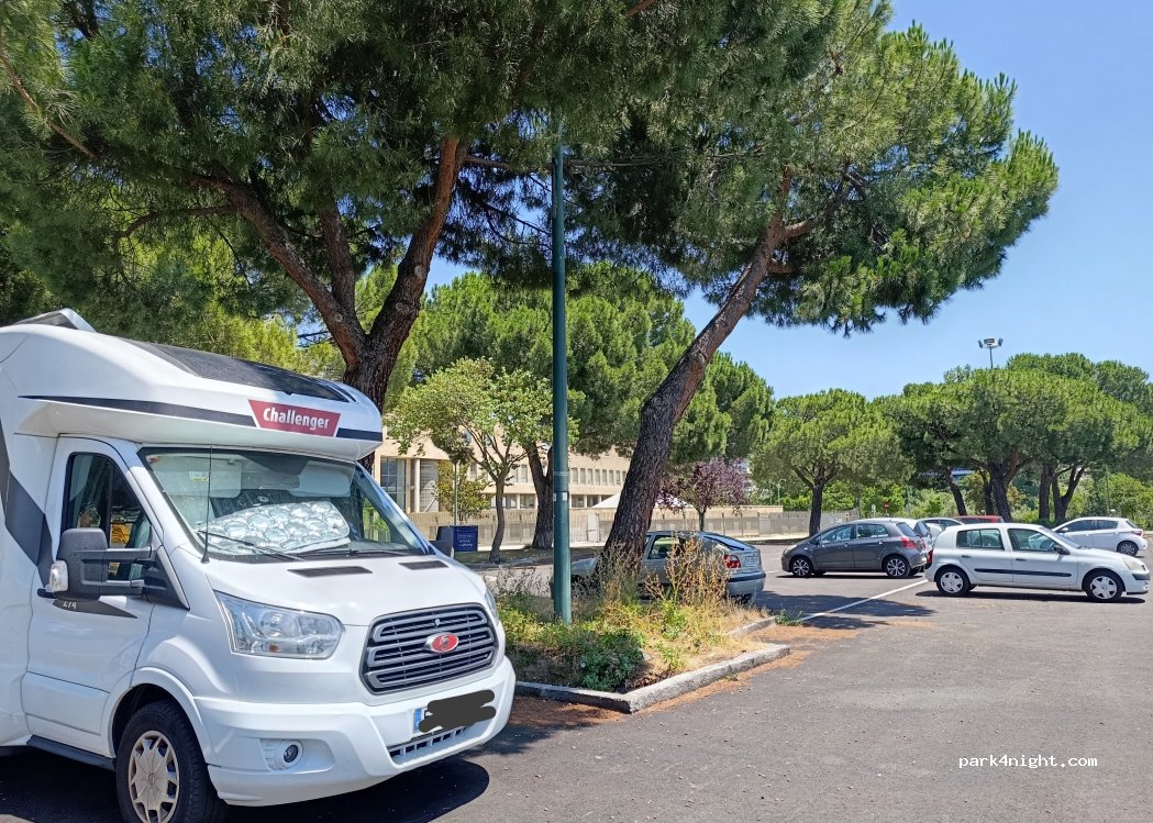 parking au calme à environ 15 min à pied du centre. mais il n'est pas du tout adapté aux grands camping-cars. seuls des vans ou des fourgons de moins de 5,40 m de long peuvent y stationner.