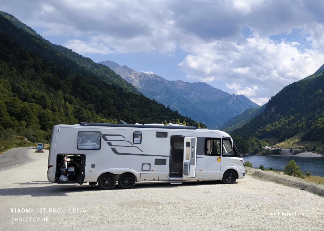 At the edge of Lake Fabrèges, tolerated at night. We had a good night despite the proximity of the uncrowded road at night. Excellent views. No swimming or watersports in this lake.