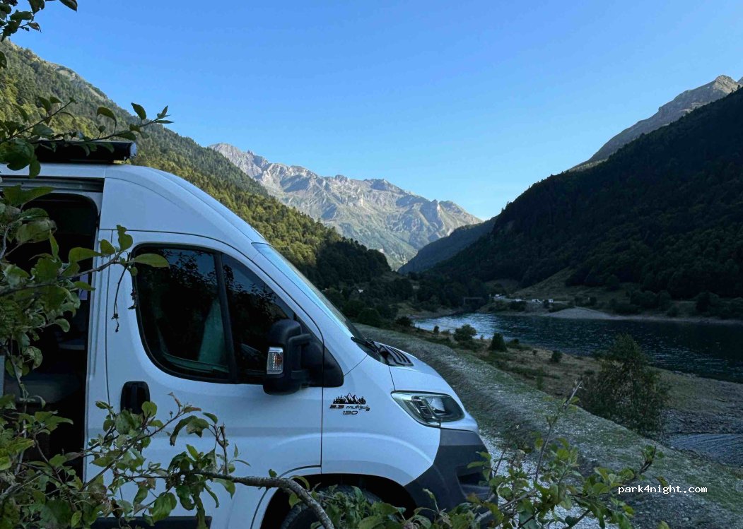 Perfecto para pasar la noche y visitar el Tren de Artouste por la mañana. Reservar antes, sino no pillareis sitio al tren y telecabina. Pk amplio, con vistas al embalse, por la noche no pasa ni dios por la carretera. Sin servicios