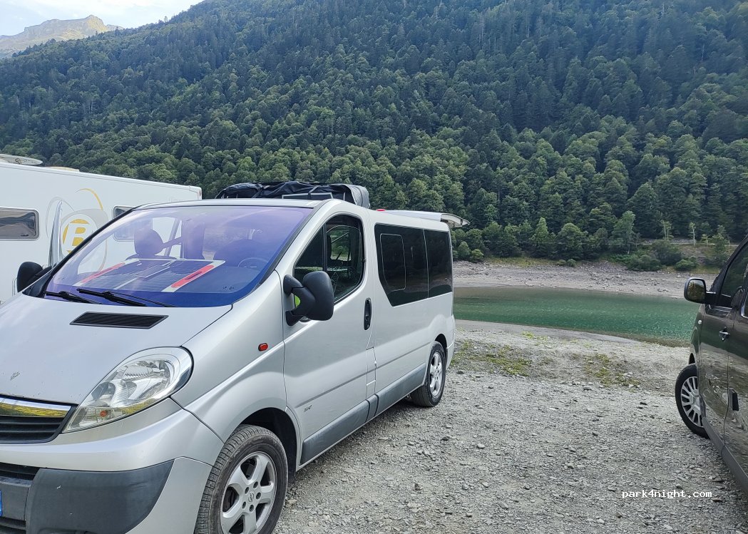 Excellent, se garer le long de la route avec vue sur le lac. Nuit très tranquille et gratuite. Ne pas hésiter à faire la ballade en prenant le train de l'Artouste et en redescendant par le sentier numéro 4 qui ramène directement sur la route. Environ 3 à 4 heures de marche pour randonneurs aguerris (fait avec des enfants de 9 et 12 ans). Attention parkings complets le week-end en cette saison.