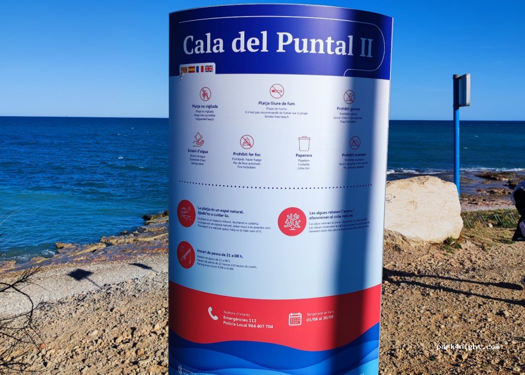 Parking en gravier avec poubelles. Une vue incroyable sur toute la côte de Peniscola à Vinaros. Petite balade le long de la côte possible et plage en contre bas.