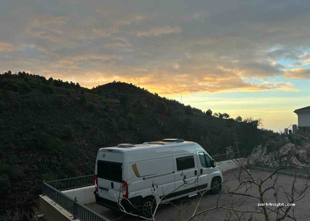 il cartello all' entrata dice che è vietato "acampar" non "aparcar", cioè non si può fare camping ma si può parcheggiare. il borgo è bellissimo. super tranquillo, non si sente nulla, lontano dalla strada principale, è una strada chiusa. 20 Min dal centro storico. vista stupenda.