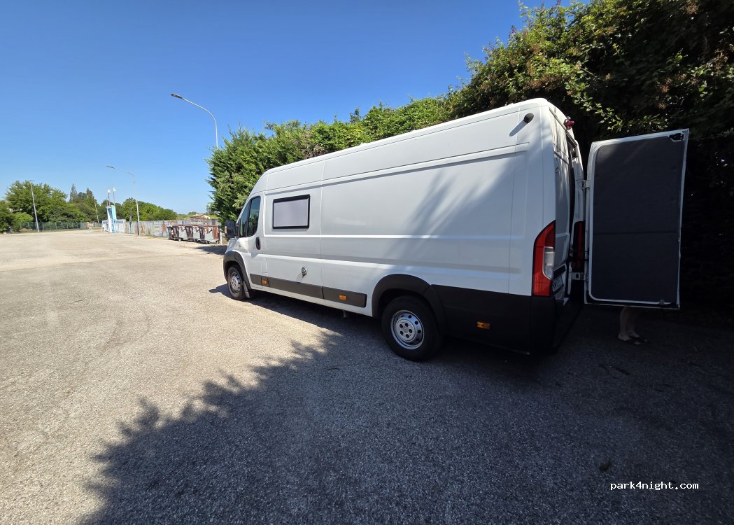 Wir haben den hinteren der beiden Parkplätze genommen, da es dort etwas grüner ist. Für eine Nacht zum schlafen total in Ordnung und ruhig, den Service haben wir nicht in Anspruch genommen. Mit uns standen noch drei weitere Womos dort.