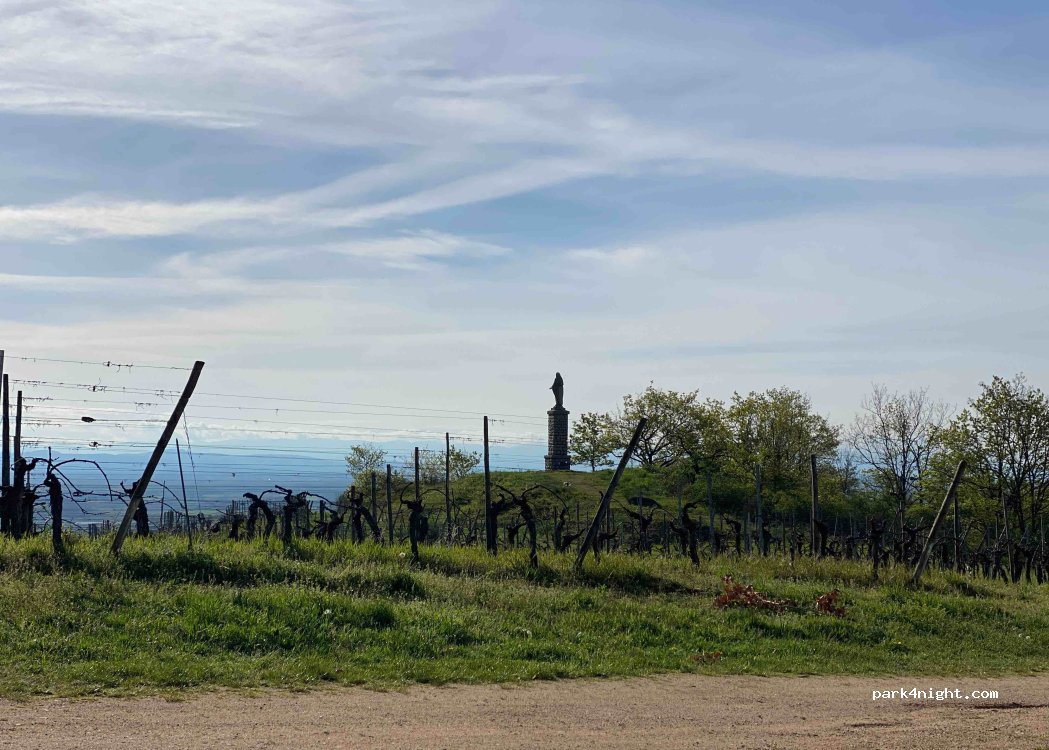 Gros coup de cœur, en plein milieu de vignes avec vue sur le haut koeninsbourg que nous avons ou visiter à la première heure. Nous n’avons pas été dérangé de toute la nuit.