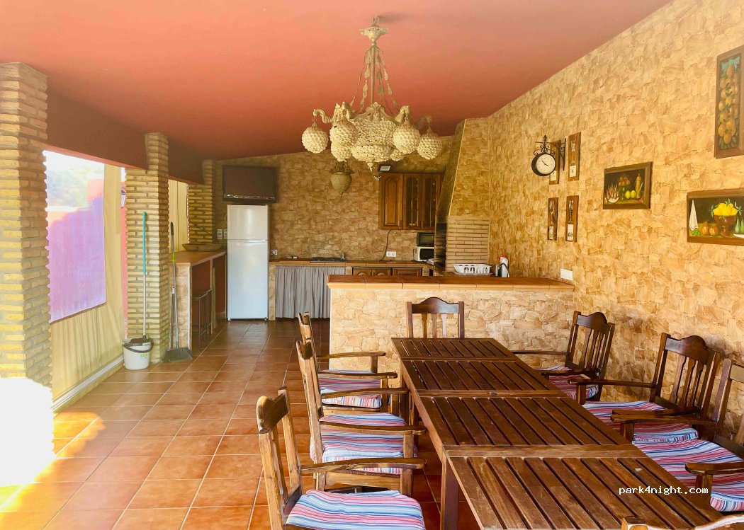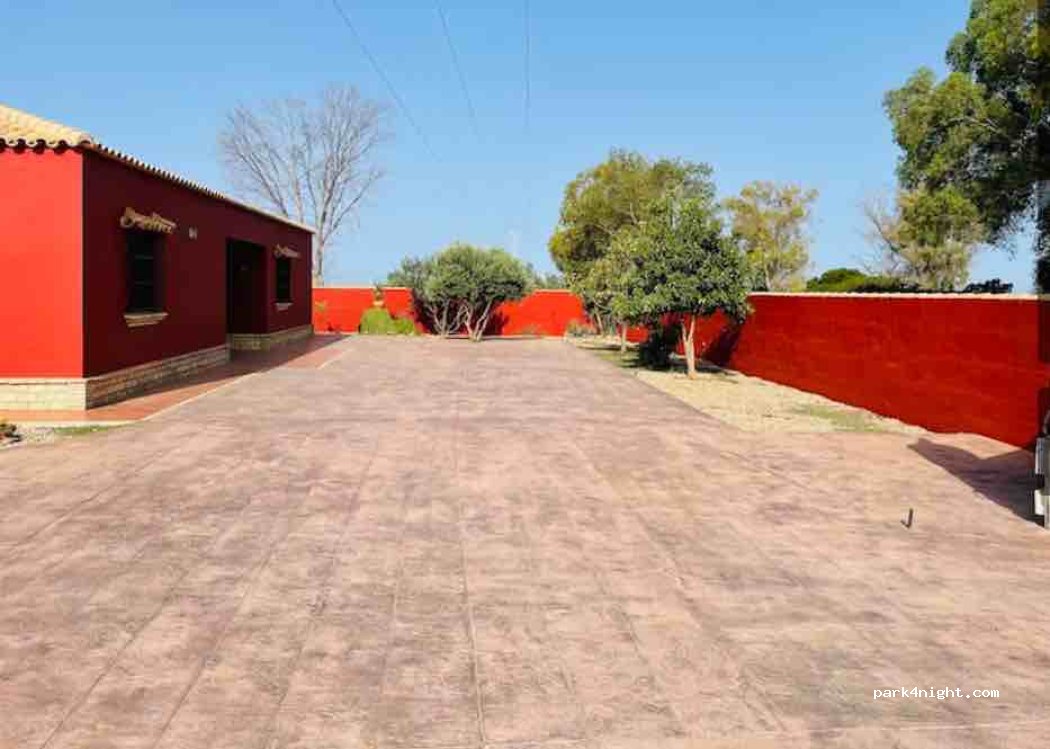 Space for caravans, motorhomes and campers to spend the night on the Novo Sancti Petri road in the municipality of Conil de la Frontera, with common services of barbecue, swimming pool, toilets, light and outdoor and indoor shower, gray and black water drainage.
