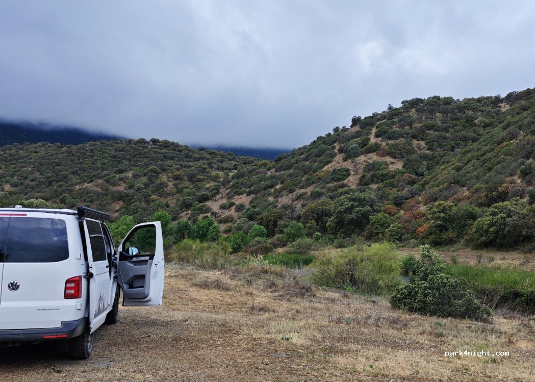 Mooie locatie langs een rustige weg en 1 van de weinige geschikte locaties in deze omgeving om te verblijven in je voertuig. langs stromend water tegen een helling aan waar de edelherten en Bergbokjes komen eten in de avond en ochtend. geen voorzieningen en geen internetbereik.