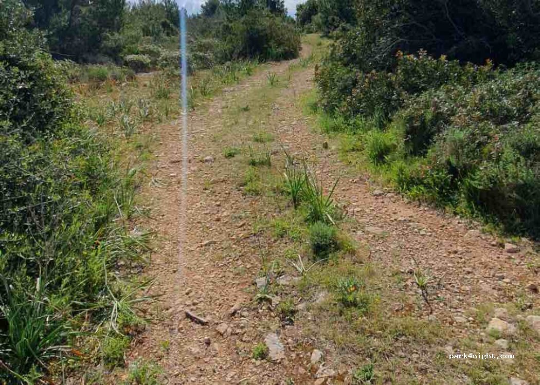 Nous nous sommes garés au fond du chemin et nous nous sommes installés un peu plus loin dans la garrigue. L'endroit est sale, plein de déchets traînent un peu partout. Mais la nuit était très calme, aucun passage sur la route.