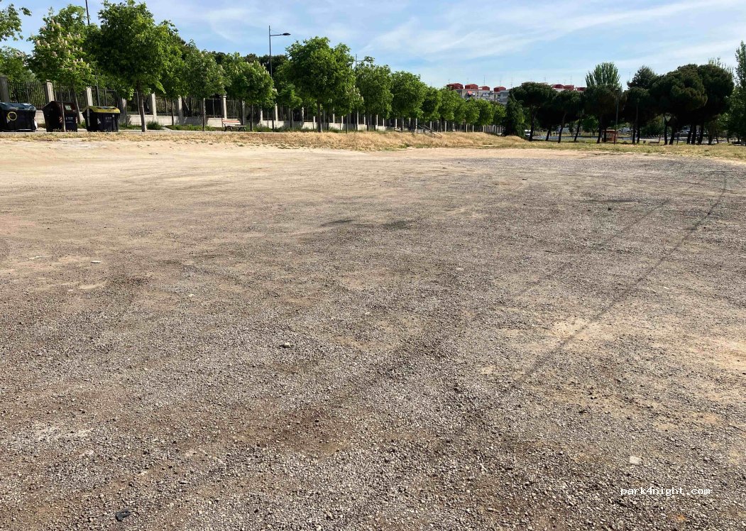 Amplio estacionamiento cerca de un parque ya poca distancia de una estación de metro. Poco tráfico . No pasé la noche aquí. Hay un bar al lado del estacionamiento, por lo que hay control social. Podría estar ocupado aquí un domingo por la tarde.