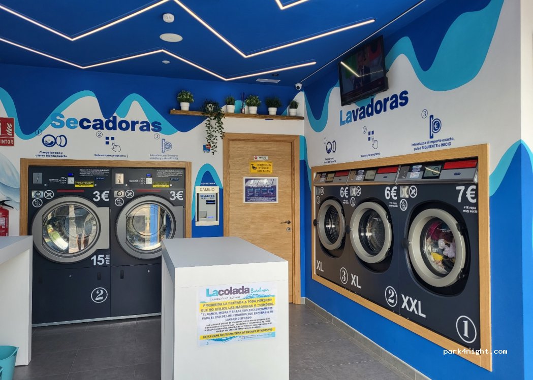 Lavandería muy recomendable. Tiene aparcamientos enfrente. Tienes varios servicios para aprovechar mientras esperas, enchufes normales y de usb. La ropa sale con muy buen olor. Queda bastante cerca del área de caravanas.