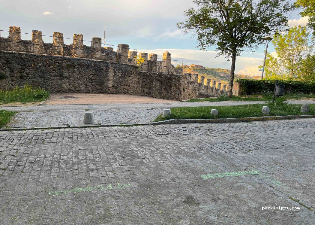 Sitio muy pequeño para una Autocaravana grande, tienes que pasar por calles de 3 metros de ancho, he entrado con una de mas de 7 metros y me ha costado salir de aquí, aparcamiento regulado por linea verde.