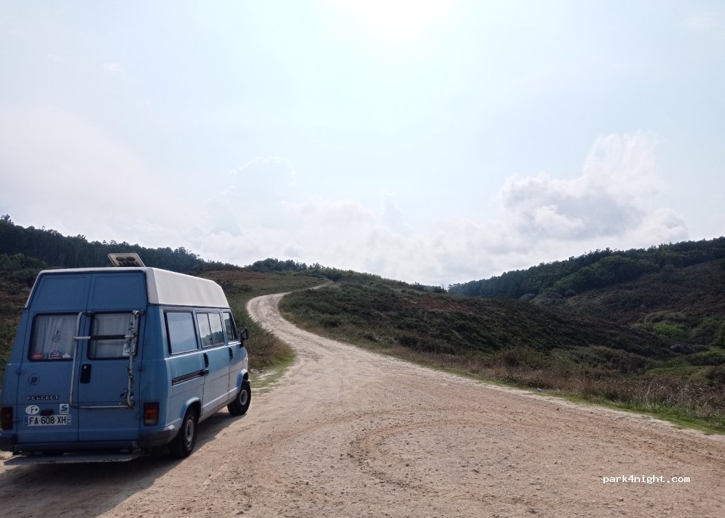 Place de parking isolée près des moulins de Ardeleiro. Chemin de terre pour y arriver mais assez praticable. Vue imprenable et endroit atypique.