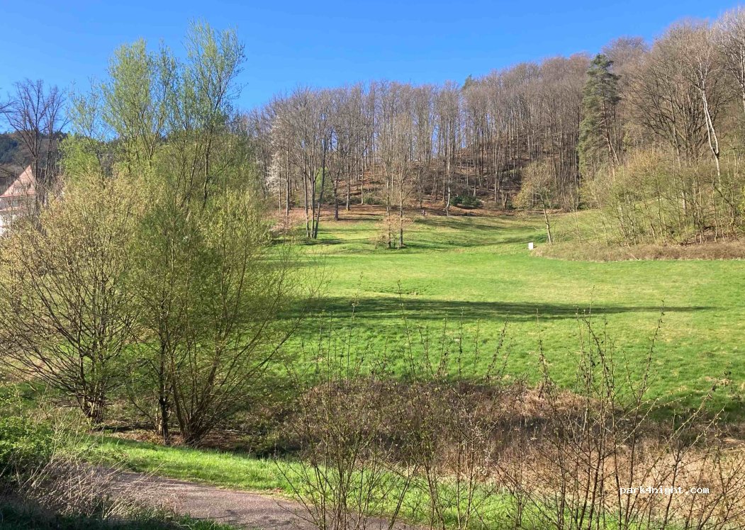 Bon Spot, entouré de forêt, proche de la route (la raison de mes 4 étoiles/5),mais elle donne accès au petit village, donc la nuit c’est très calme. Très légèrement en pente. Quelques joggeurs le matin.Petite rivière à côté (pour rafraîchir les boissons!)Point de départ idéal pour randonner vers le château du Trifels. Je conseille pour une halte d’une ou 2 nuits au maxi. Salutations Alsaciennes…