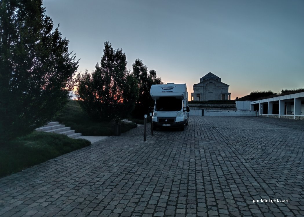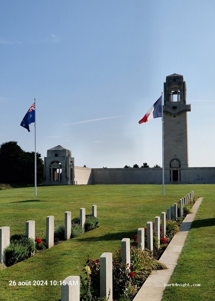 Parking du mémorial Australien de la 1ere guerre mondiale. Visite gratuite et très intéressante. Toilettes à disposition. Le musée gratuit est derrière le mémorial.